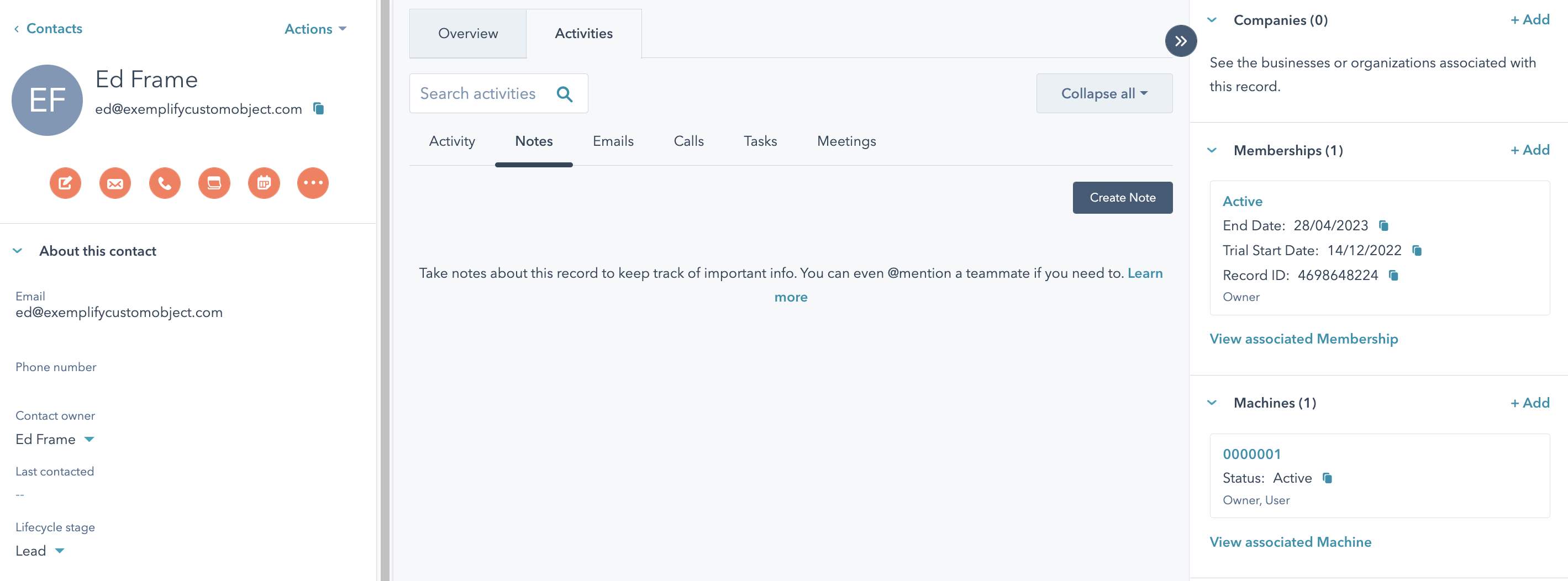 When that contact activated a free trail, the contact would be assigned a "Membership" which would in simultaneously be associated with the Machine. This allowed Vitruvian to send